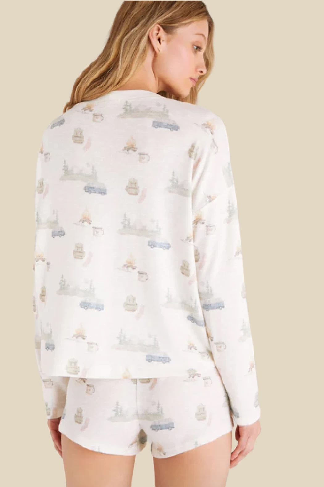 You’ll dream of that next big road tripin the Camper Henley Long Sleeve Top. This relaxed, snap-front top features a cute van and camp inspired print on our soft slub sweater knit fabric. Make a cute matching set with the Mia Camper Short.