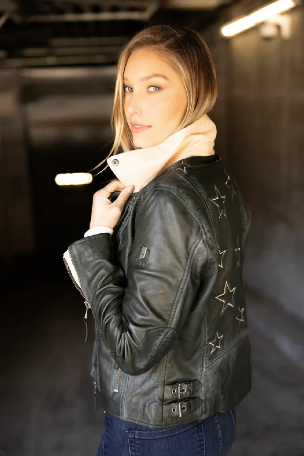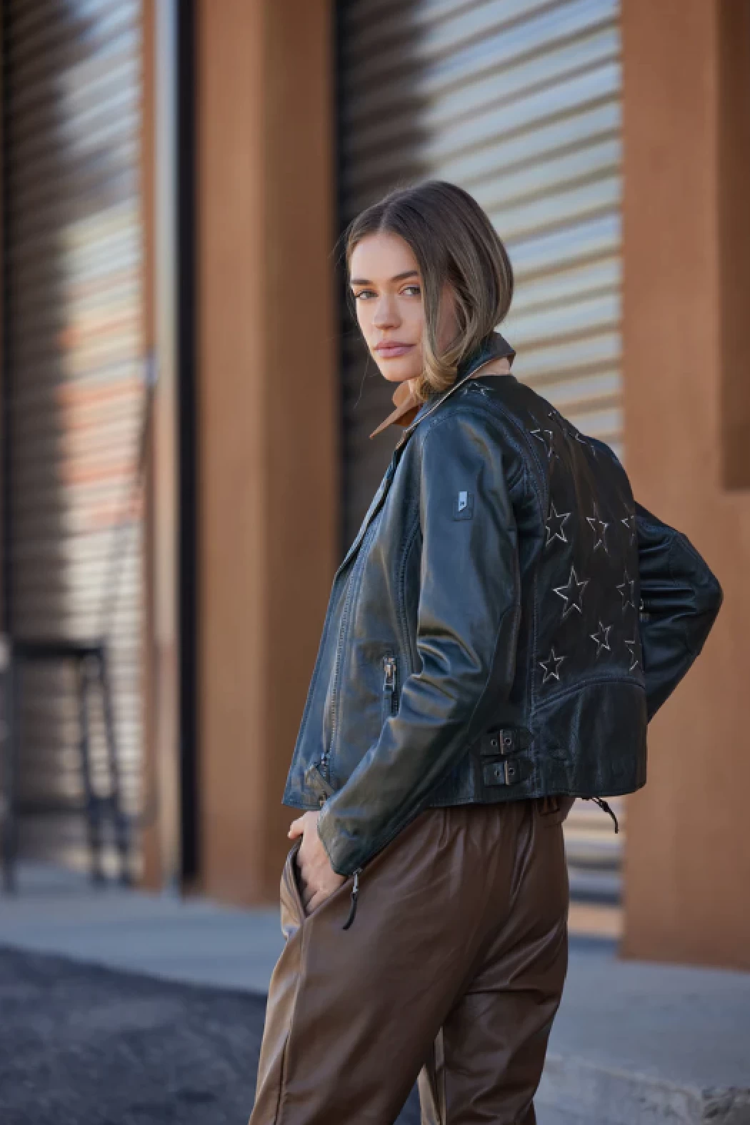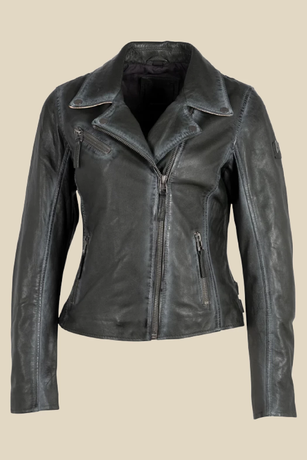 Ahhh… the famous star jacket – highlighted in many cameos on tv and movies, this style announces she has arrived. Made of 100% vegetable tanned and ethically produced lambskin leather, this jacket will catch the eye of many admirers. The seams are gently polished to ensure a distressed effect, the inside of the pockets, inside of the cuff zips and under the collar give a fabulous contrast pop of colour!