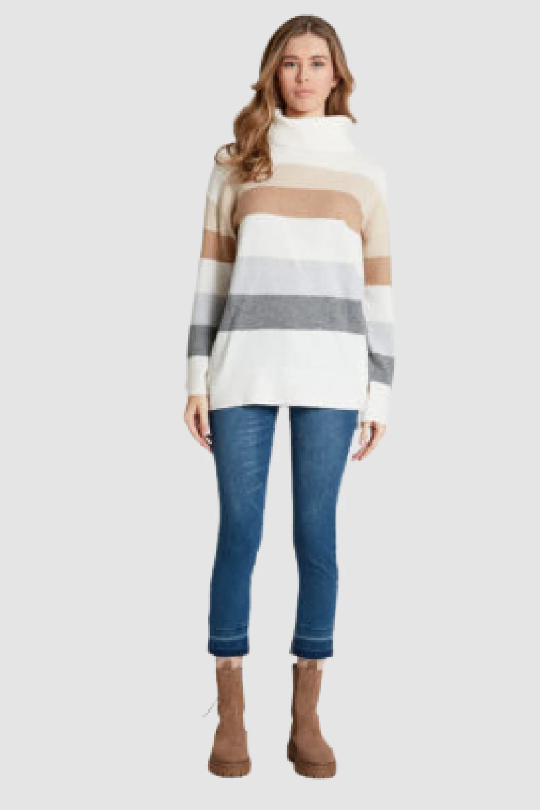 chunky stripe turtleneck knit sweater, Superb turtleneck sweater, long sleeves with large stripes. Off-white combo