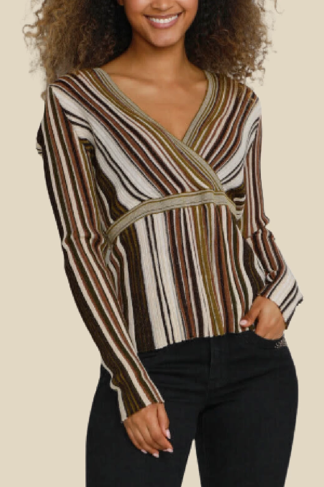 The deep earthy colours and flattering empire cut of this top make it a new fall staple for your closet! Wear with denim for a dinner out or pair with a classic black pencil skirt for work.