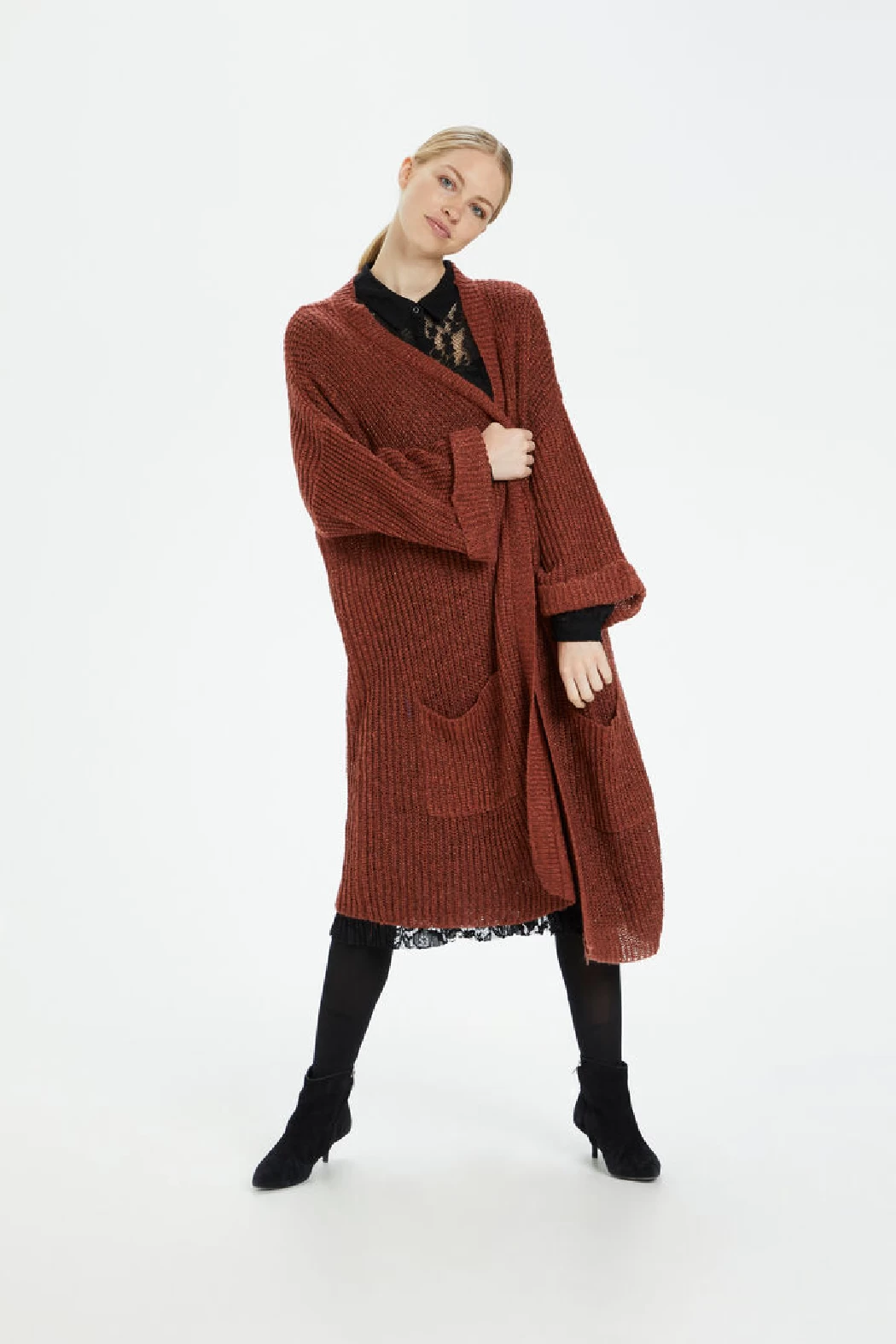 Knitted cardigan with tinsel feature. Cardigan fits over sized.