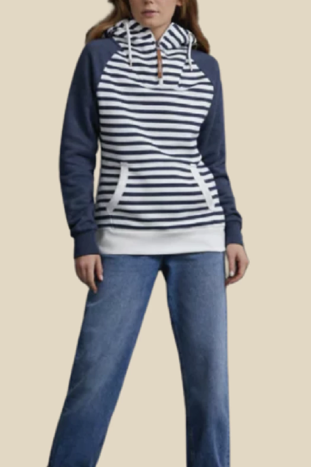 Wanakome Faith Navy & White Pullover Hoodie with Short Zip and Pockets. Drawstrings on Neckline.