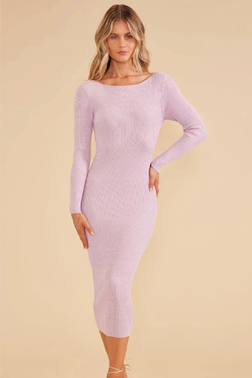 With a sleek, form-fitting silhouette and a chic twist and cut-out detail at the back, the Fresco Twist Back Knit Dress is a head-turner.