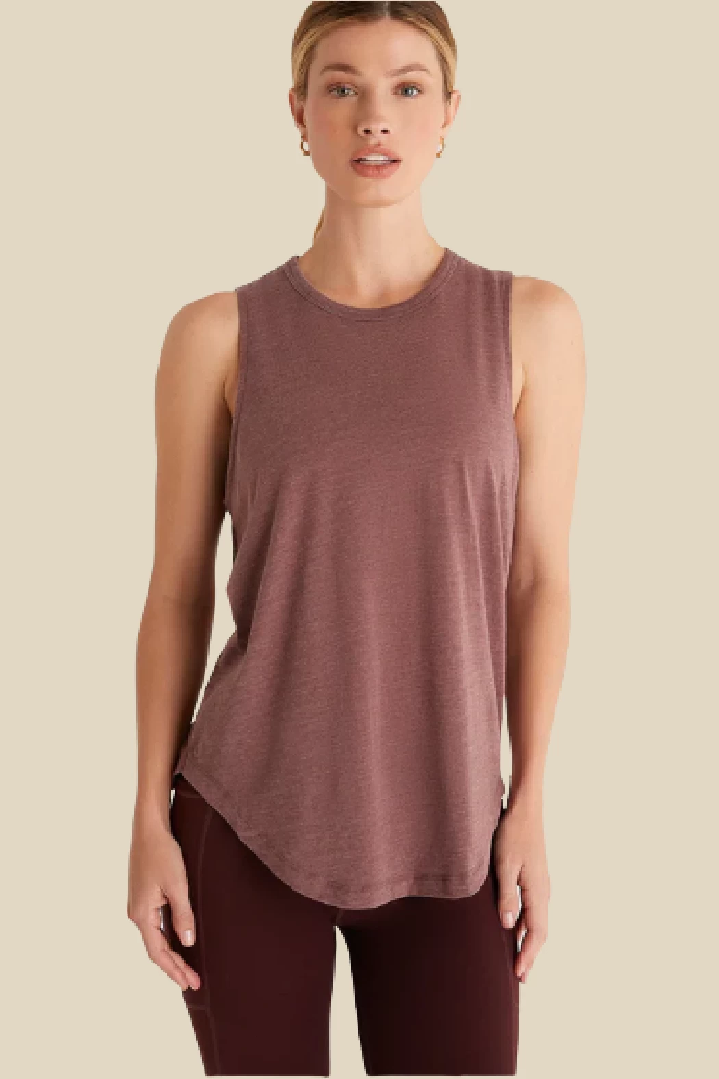 The Glow with the Flow Tank is that versatile layering option you need in your active wardrobe. Wear it down and loose for a relaxed look, or tie the front or back up for a sporty, fun look. Made in our classic jersey fabric with a vintage wash, you’ll find ways to wear it all season.