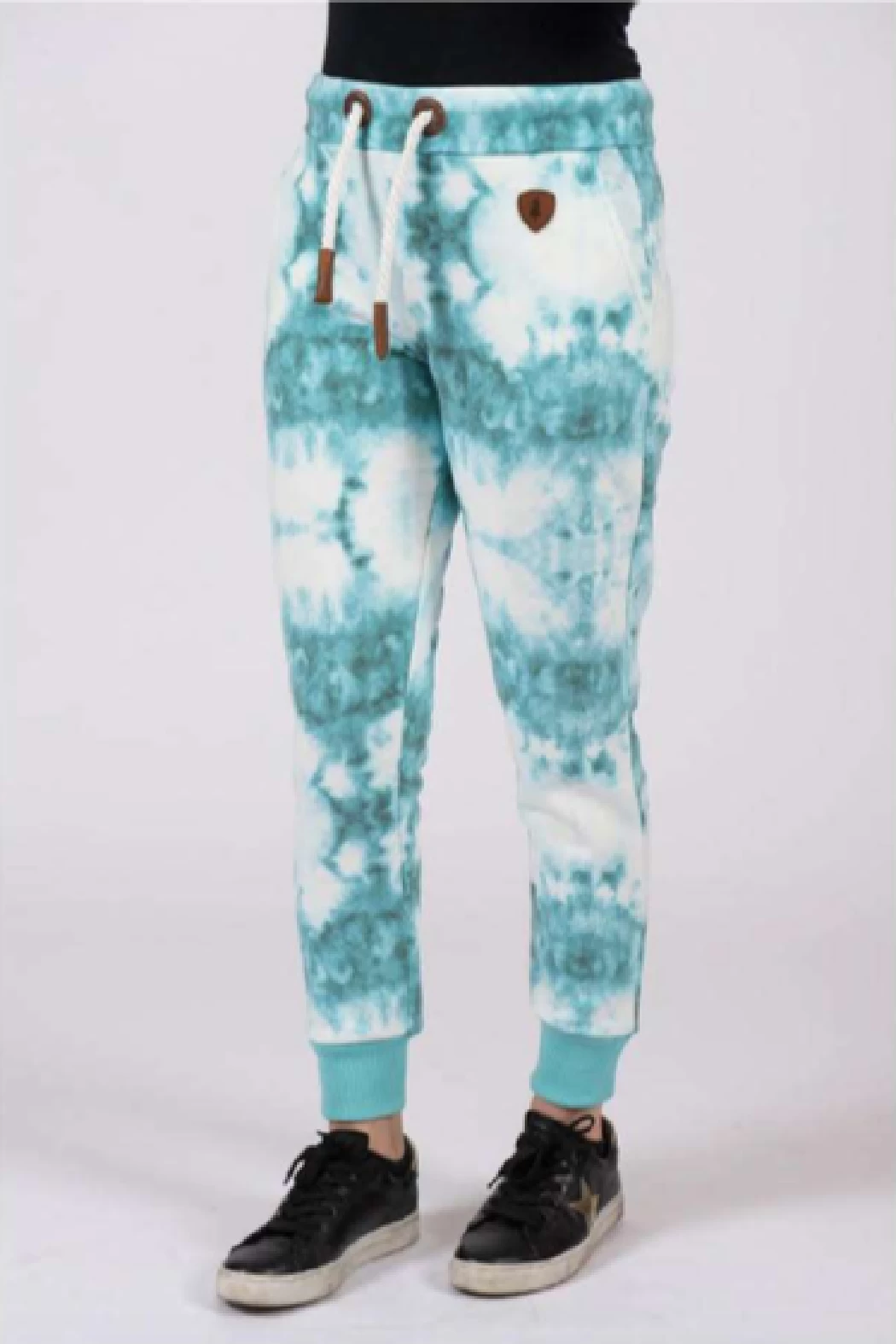Ida Tie Dye Jogger in our super soft, cozy brushed French Terry. Featuring elasticized cinch tie waistband, embroidered patch, and matching pullover available. Material does have some natural stretch. Garment is more of a slim fit. If you are in between sizes or prefer a cozier fit, please size up.