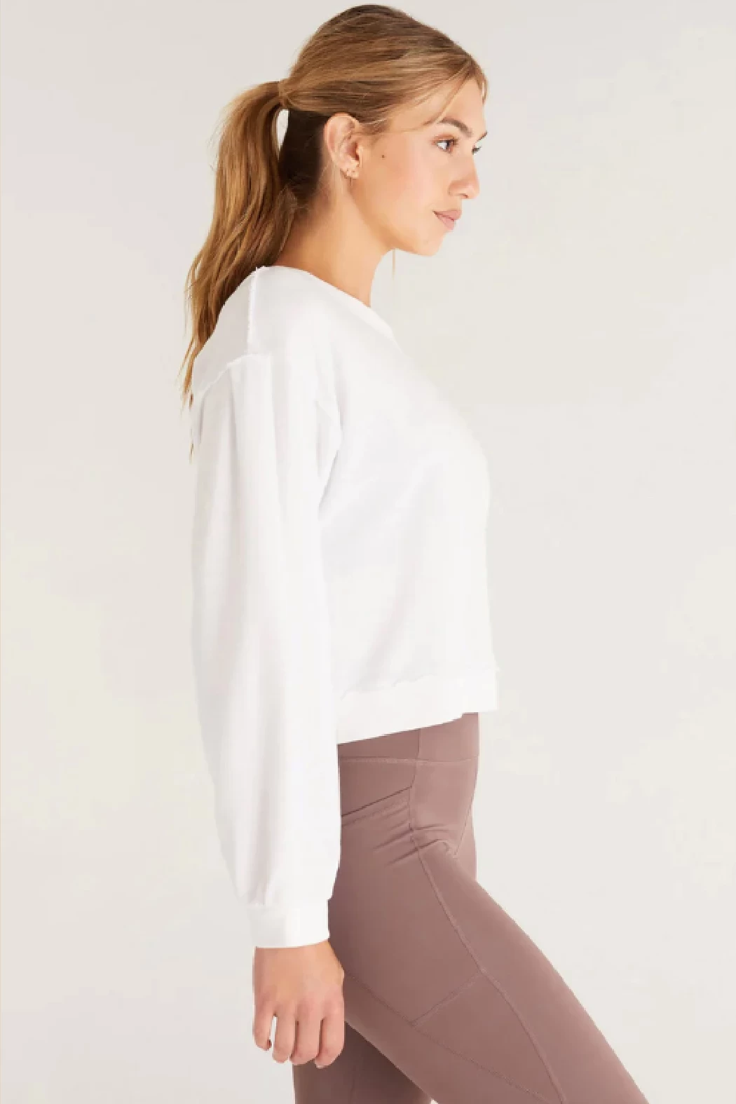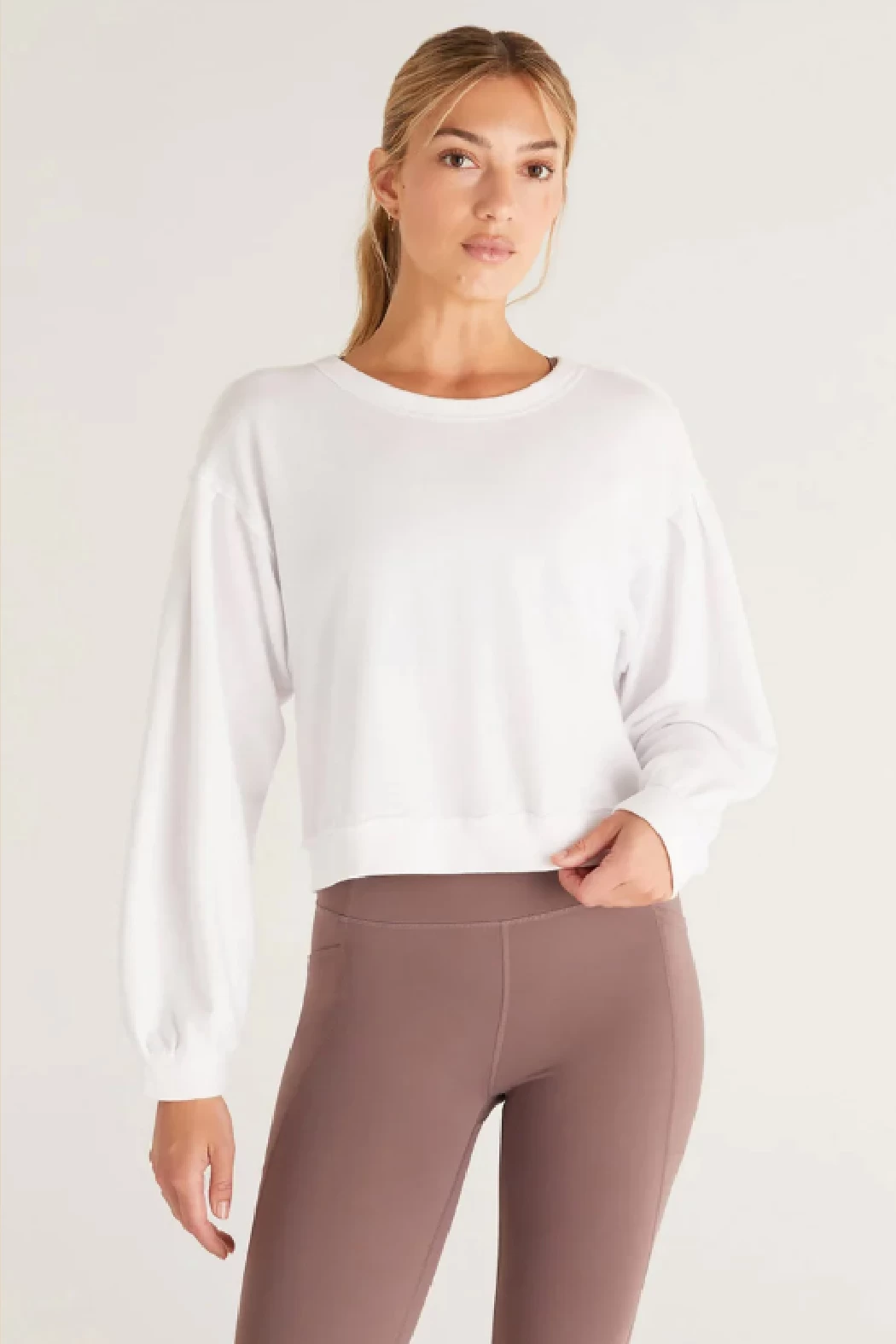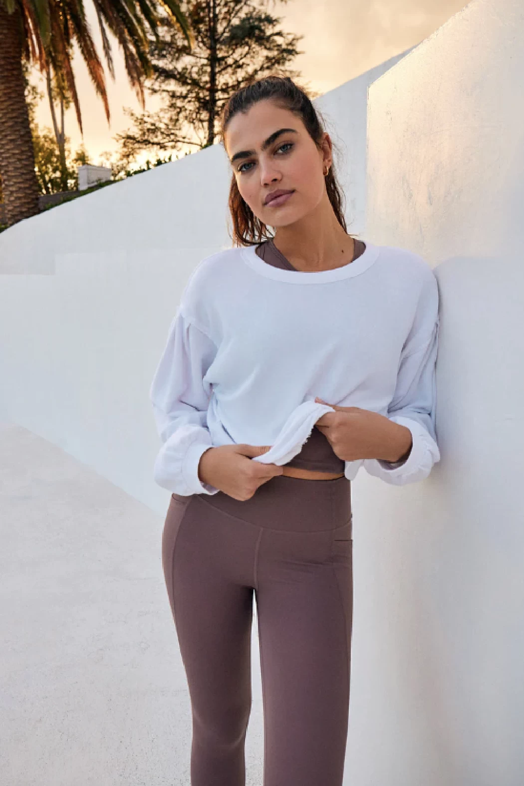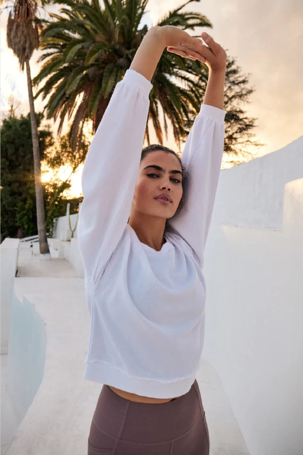 Made using our new French Terry knit fabric, this relaxed and slightly oversized pullover features an open back detail with bloussant sleeves. Throw it on over any leggings or shorts in this collection for a comfy layering option.