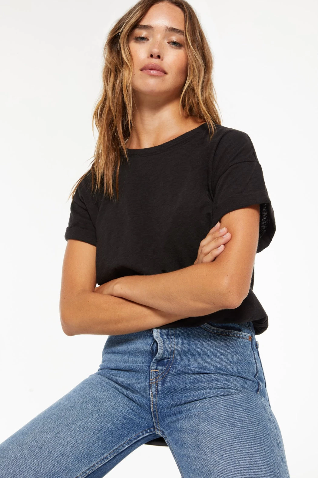 Made with our best-selling 100% cotton slub fabric, the Kei Skimmer Tee features a boxy, cropped design with rolled sleeves and an elastic hem. This comfy casual tee pairs perfectly with jeans, shorts, or leggings and will become a new go-to.