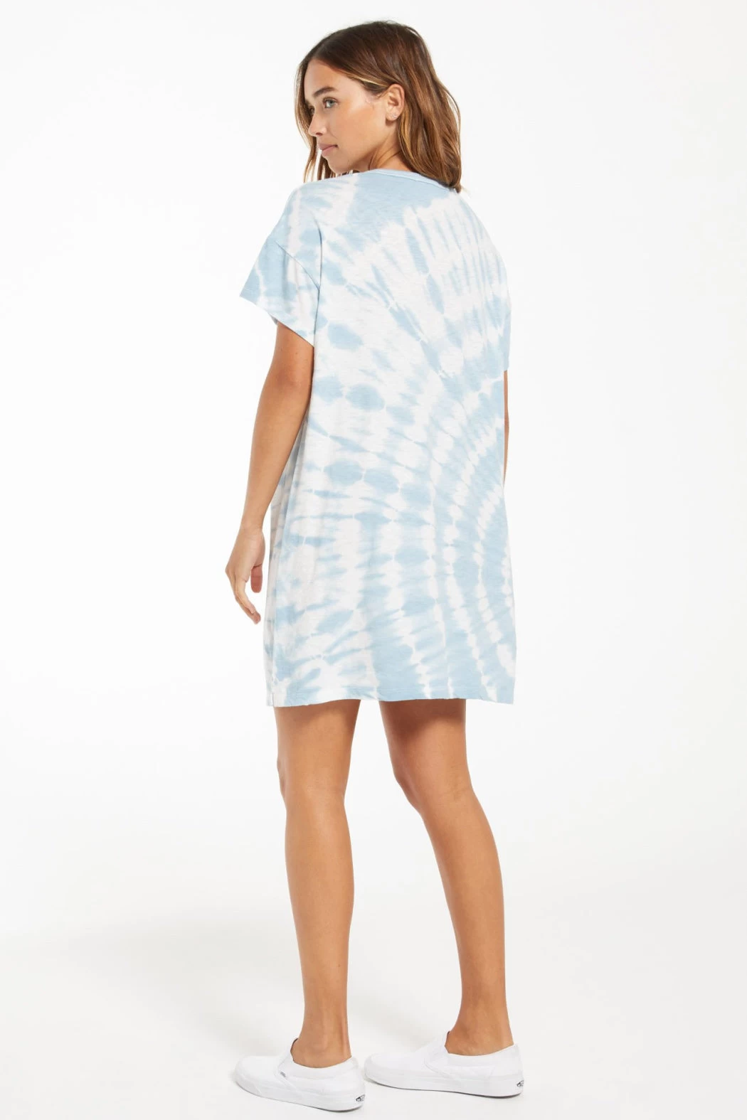 Spiral tie-dye is here! The Launa Spiral Tie- Dye Dress is an easy-to-wear, oversized tee dress that comes with a crewneck and slight drop shoulder short sleeve that is made from our breathable cotton slub fabric. It feels breezy and looks cute, especially with a pair of statement sandals or booties.