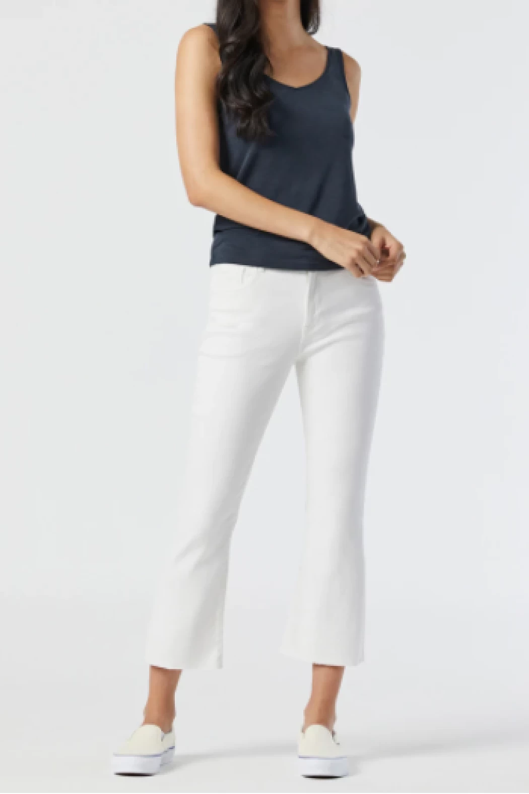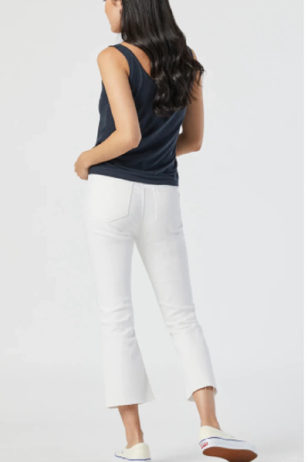 Be bold, bright, and entirely yourself in these white cropped flare jeans with a raw hem that are made from vintage-inspired fabric with minimal stretch to feel like an old favorite with a modern twist.