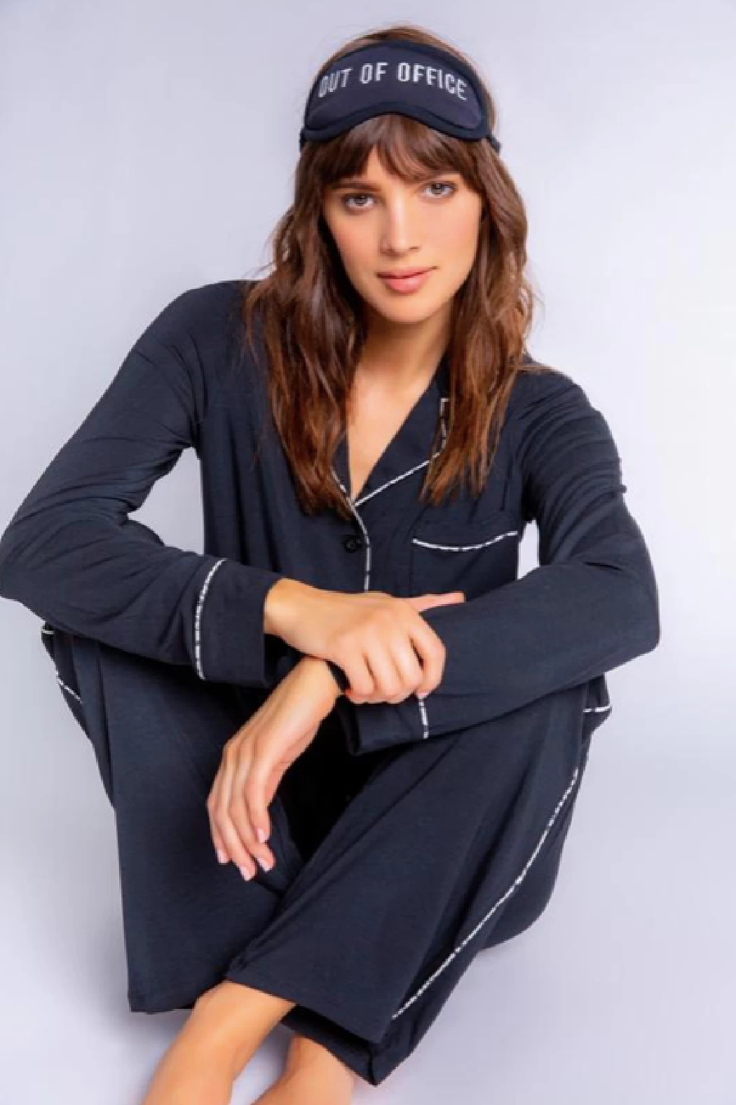 There’s nothing better than a classic. One of our best-selling fabrics, in a perfect PJ set. Modal is a great year-round weight, with a cool feeling in warm weather, yet cozy & luxe as weather cools down. In classic black with matching sleep mask embroidered “out of office”. Ivory-leopard piping gives a modern touch.