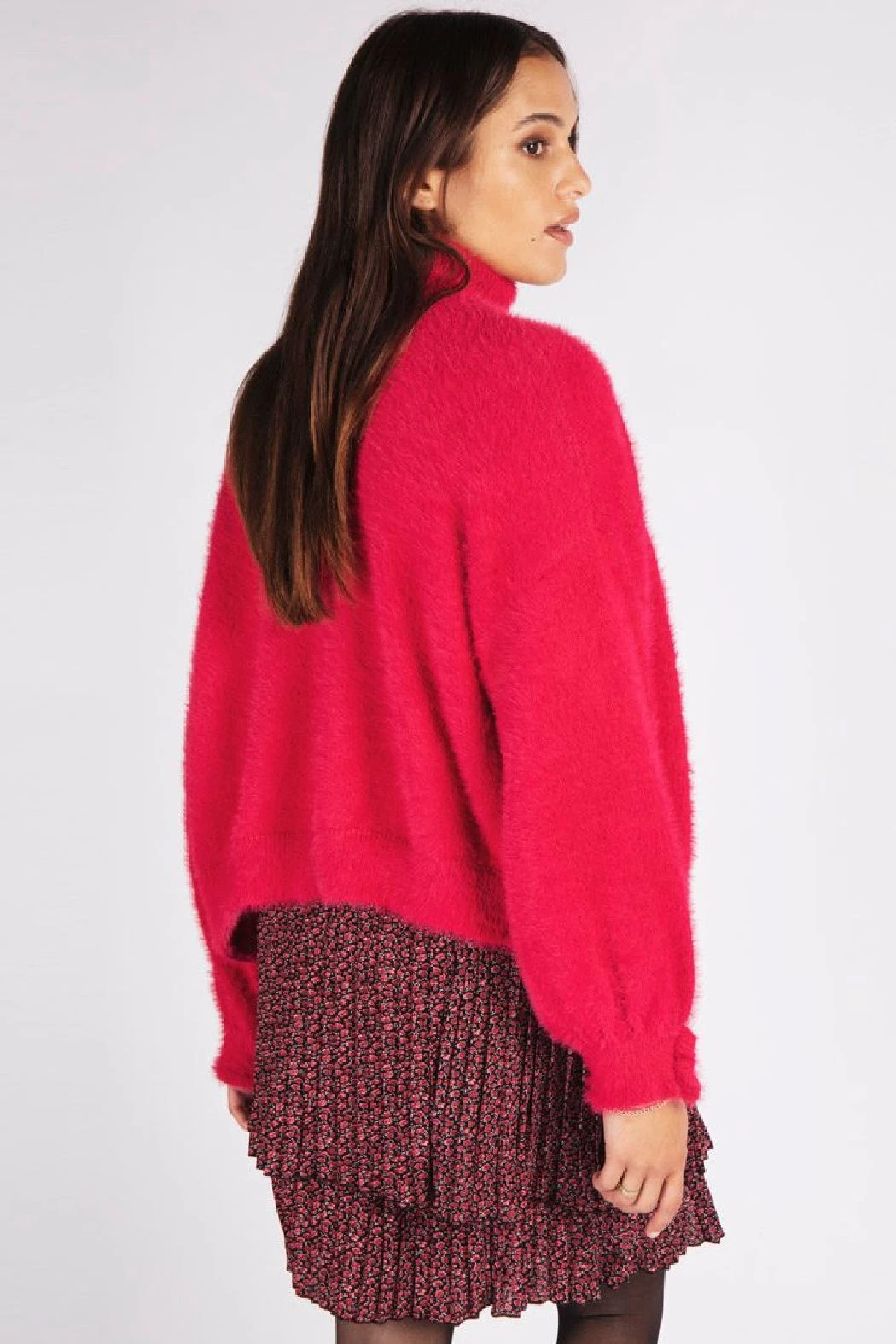 Fuzzy knitted cardigan with unique knot details. The cardigan is comfortable thanks to the soft material and has an oversized fit, including bling button details down the centre and on cuffs.